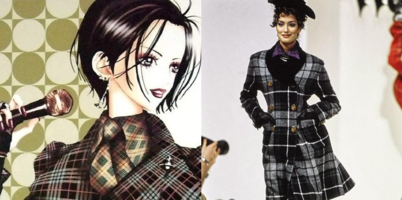 El estilo de Nana también se inclina por blazers y faldas de tartán plisadas que hacen referencia a la colección de Vivienne Westwood de 1993 “Anglomania” (fig. 7 y 8).