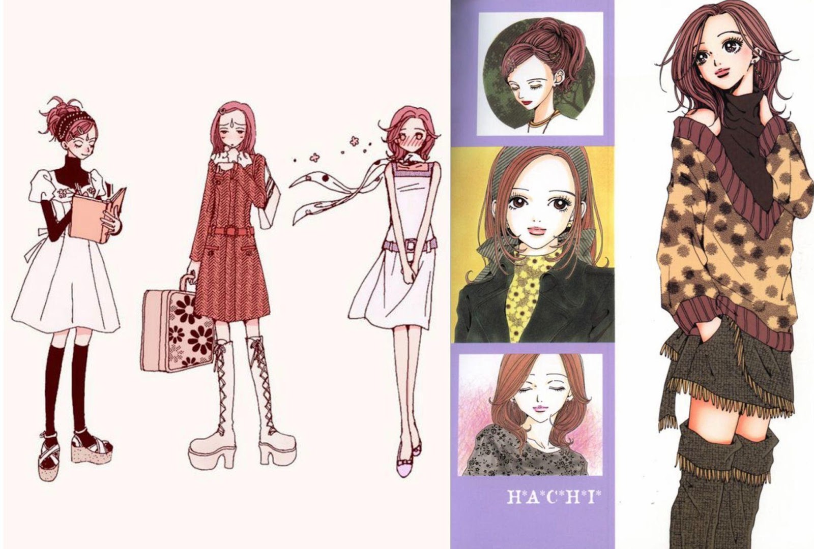 Mientras que en la escuela de arte se vestía acorde al estilo de su amiga Junko y de los demás estudiantes, conforme va conociendo a Nana y a su grupo de música (Blast), el estilo de Hachi cambia y comienza a llevar complementos de Vivienne Westwood como señal de que se está introduciendo en el mundo artístico (fig. 22 y 23).