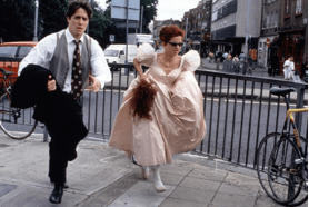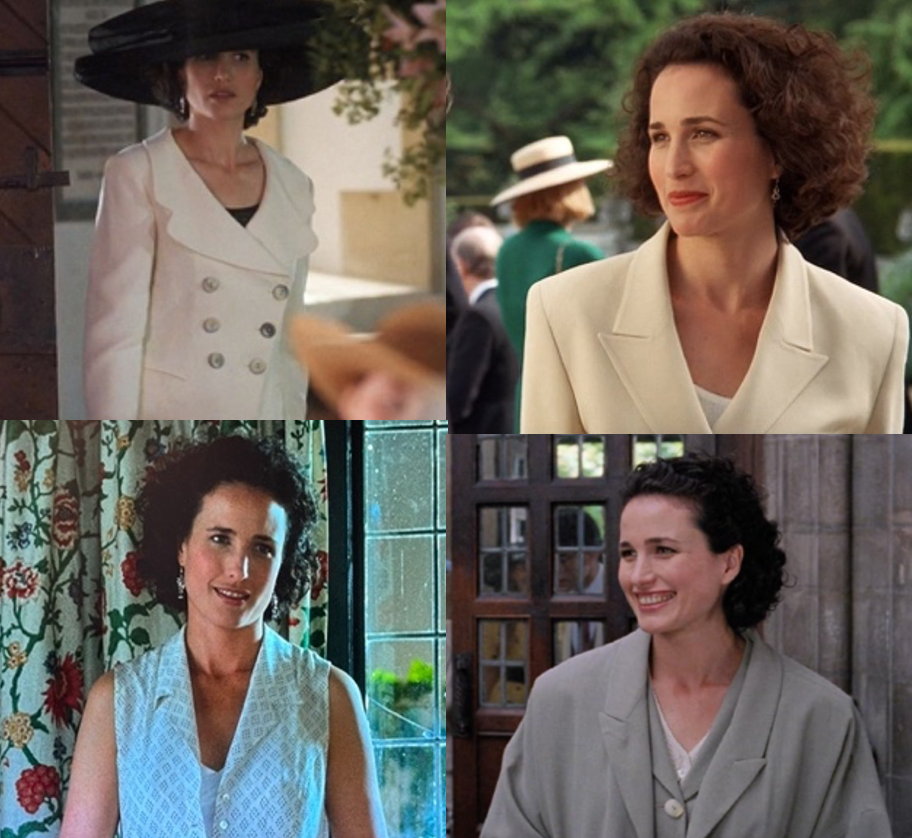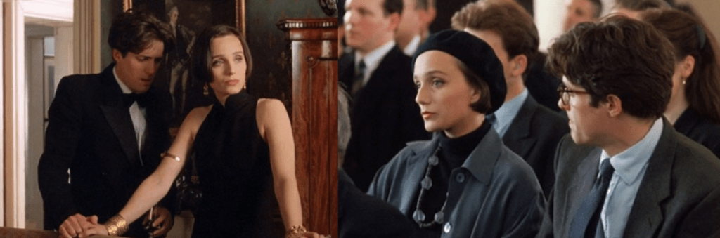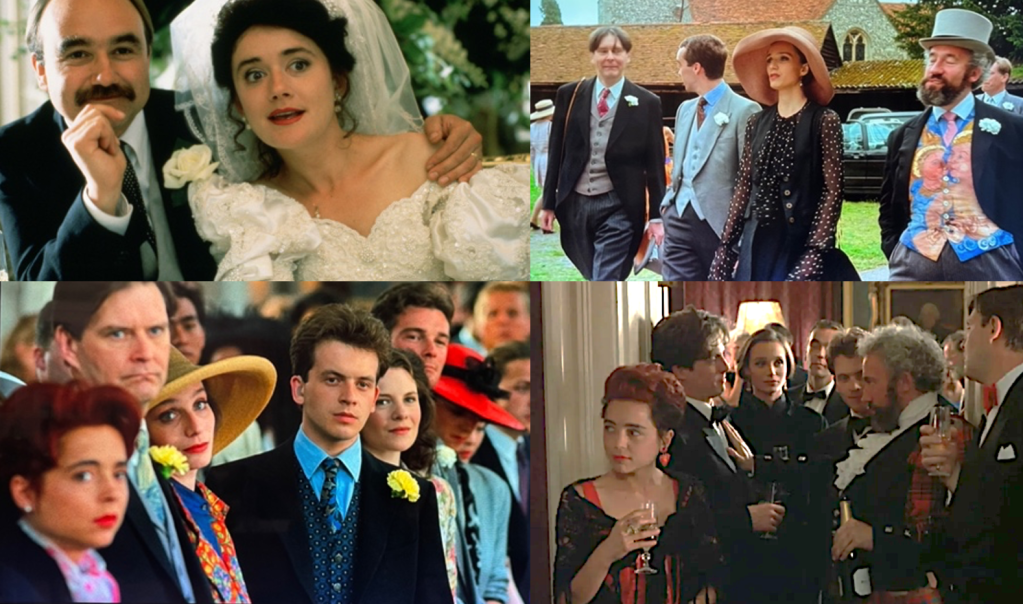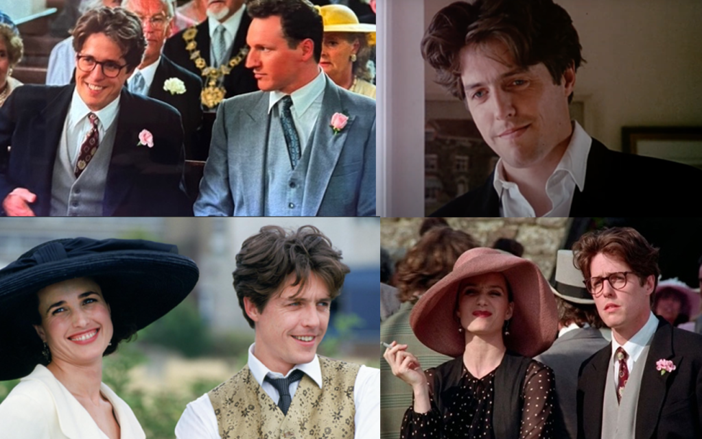 Comienzo los noventa aceptando la invitación para ir a Cuatro bodas y un funeral (Mike Newell, 1994). En la vida real, para todas estas celebraciones, el vestuario es más un estado de ánimo  que una indumentaria. En esta película esa realidad se convierte en un desfile emocional. Aquí, la elegancia británica no es sólo una cuestión de protocolo, sino un campo de batalla afectivo.