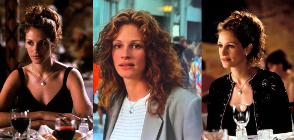 La diseñadora Jeffrey Kurland logra que esta película funcione como un duelo silencioso entre dos mujeres que se desean lo mismo (aunque solo una lo sepa desde el principio). Y por eso cada elección de vestuario está pensada no como adorno, sino como combate. Lo que Julia Roberts lleva, lo dice todo. Lo que no lleva, también.