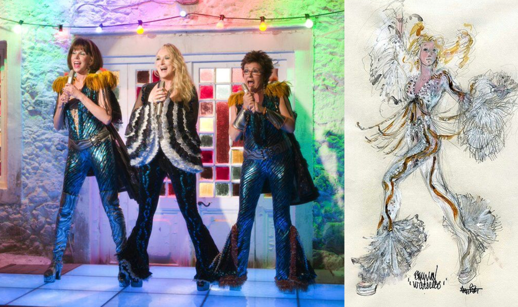 Ahora bien, la explosión real ocurre cuando ella y sus amigas Tanya (Christine Baranski) y Rosie (Julie Walters) se reencuentran. Las “Dínamos” vuelven a escena y Roth hace su trabajo: monos metálicos, botas plateadas, hombreras, flecos y una colección de prendas que parecen diseñadas para animar la pista de baile. No hay contención, ni falta que hace. La secuencia en la que cantan Super Trouper, con el grupo reunido y vestidas como si el mundo se acabara en una discoteca, es una oda a la elegancia lúdica: esa que no pide permiso para brillar.