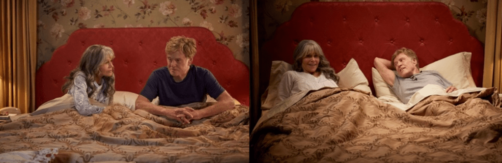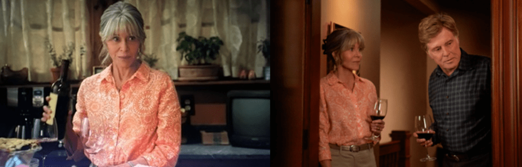 En la emotiva secuencia en que bailan juntos, el vestuario desempeña un papel crucial en la narrativa.​ Jane Fonda luce un vestido elegante y sobrio que refleja su deseo de revivir momentos de intimidad y conexión emocional. El diseño del vestido, de líneas sencillas y colores suaves, resalta la elegancia madura del personaje y su apertura a nuevas experiencias. Robert Redford viste un atuendo más formal de lo habitual, con una camisa de vestir y chaqueta, simbolizando su disposición a salir de la rutina y compartir un momento especial con Addie.​