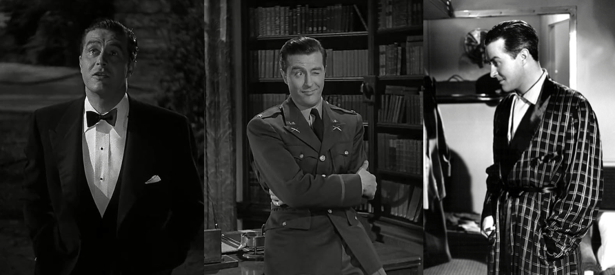 Ray Milland, con uniforme de gala o ropa deportiva impecable, representa lo opuesto: la seriedad, la disciplina, el ideal masculino del cine bélico sin guerra. Es el clásico ejemplo del hombre que nunca dejaría entrar a una mujer como Susan en su vida… salvo que llegue disfrazada de otra cosa.
