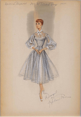 Nuevamente, el diseño de vestuario de Edith Head se mueve en una cuerda floja muy sutil: vestir a una mujer adulta como si fuera una niña… sin que el espectador pierda del todo la noción de que es un engaño.