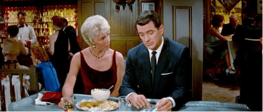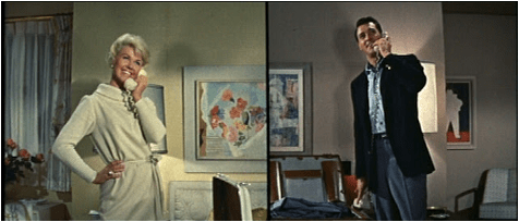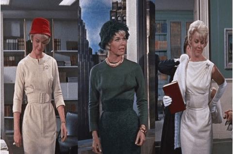 Doris Day, con sus impecables conjuntos de cóctel, abrigos pastel y pijamas coordinados hasta el último botón, representa a la mujer moderna que intenta mantener el control en un mundo de apariencias. Frente a ella, Rock Hudson despliega su encanto travieso disfrazado de galán refinado, pero en esencia es un pícaro que necesita ser domesticado. Lo que comienza como una guerra de estilos (ella estructurada, él informalmente seductor) termina revelando que, más allá del satén y el tweed, ambos estaban hechos el uno para el otro: dos solteros neoyorquinos, cada uno con sus manías, buscando sin saberlo ese descosido que encaja justo donde el otro se rompe para poder terminar dando palmas juntos…