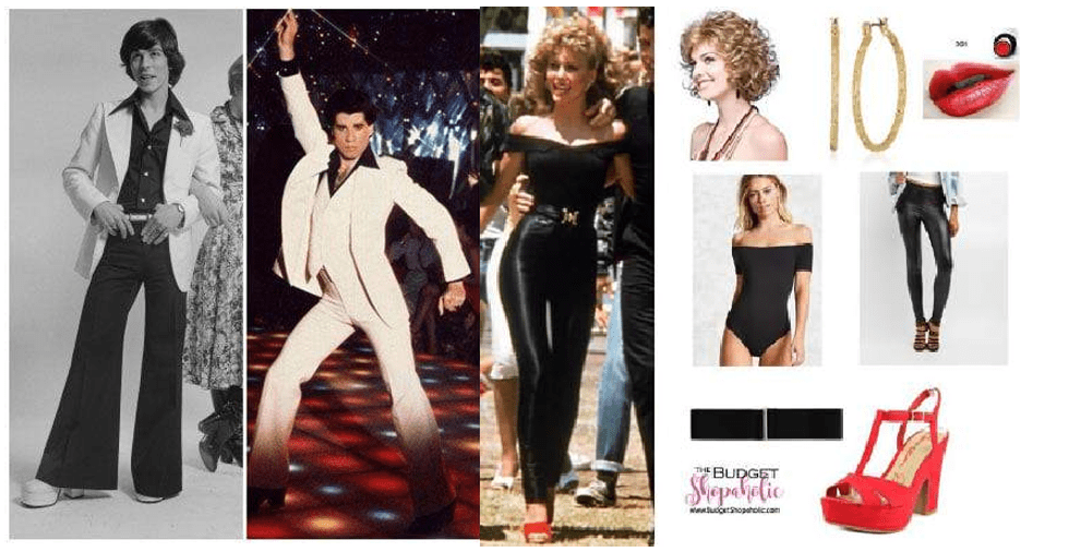 En los años 70 los pantalones de campana, las grandes solapas y las camisas abiertas casi hasta el ombligo se veían en la calle antes de que se estrenara Fiebre del sábado noche (1977), pero fue John Travolta quien los popularizó hasta el punto de que las ventas de prendas de poliéster aumentaron de forma colosal. También gracias a John Travolta y Olivia Newton-John en Grease (1978), volvieron a ponerse de moda las cazadoras de cuero, los pantalones de pitillo y el top negro, típicos de finales de los cincuenta en que se situaba la historia, que fue copiado por toda una generación de jóvenes.