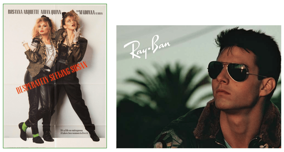Si con la reina del pop se consolidó un tipo de moda para los jóvenes Tom Cruise puso de moda la cazadora tipo aviador y disparó las ventas de las Ray Ban al llevarlas en Top Gun (1986).