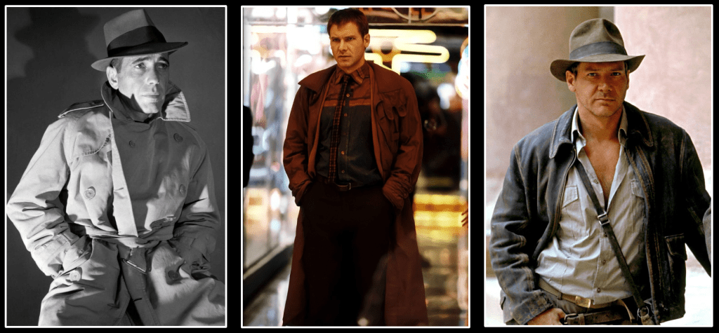 Por su recreación de la estética del cine negro de los 40 se recuperó una prenda de la que hablábamos en la gabardina Burberry de Humphrey Bogart para el personaje protagonista, Rick Deckard interpretado por Harrison Ford.